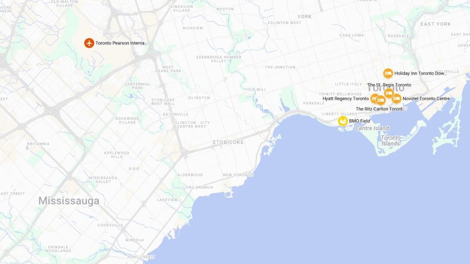 Explore Toronto’s key areas – from BMO Field and hotel districts to major landmarks – using our interactive map to plan your visit efficiently.