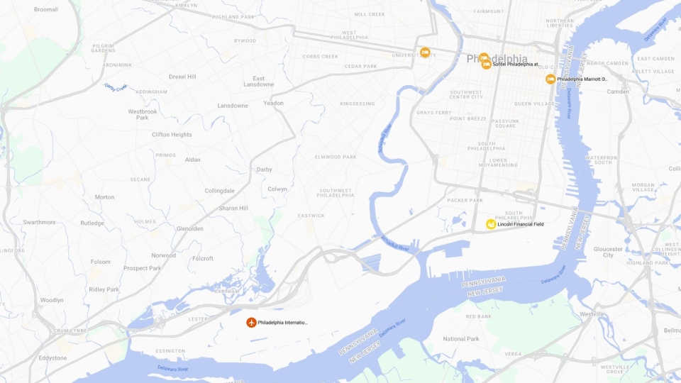 Explore Philadelphia’s stadium, airport, and key hotel areas with our interactive map – designed to simplify your trip planning and logistics.